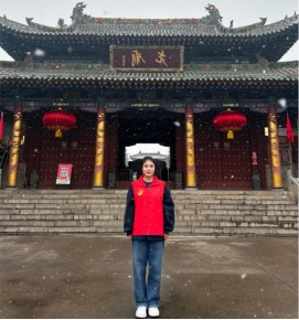 春节是中国传统文化中重要的节日之一,他象征着团圆、和谐与新的开始,也是家庭团聚、分享欢乐的时刻。为了更好地传承和弘扬春节文化,我系大数据2211班何思琦寒假期间参与尧都区文旅局《红红火火过大年·热热闹闹来接龙》的宣传视频的拍摄。在临汾市市政府的带领下,临汾市花开解放志愿服务队伍的30名青年志愿者经过一天的舞蹈学习与排练。2月2日在市政府的带领下一同前往临汾市尧都区尧都公园、临汾市尧地区尧庙、临汾市天下第一门、临汾市吴村镇东郭村等不同景点进行拍摄录制,风雪再大也阻止不了志愿者对临汾的热爱。